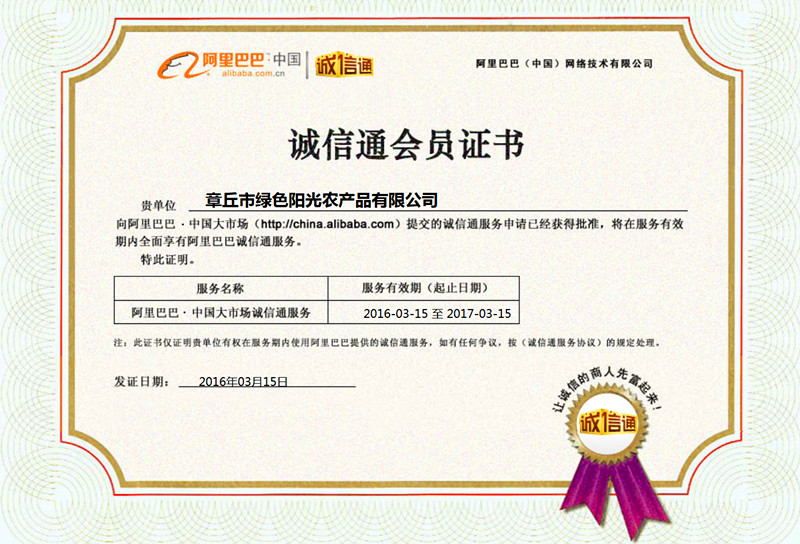 阿里巴巴诚信通证书