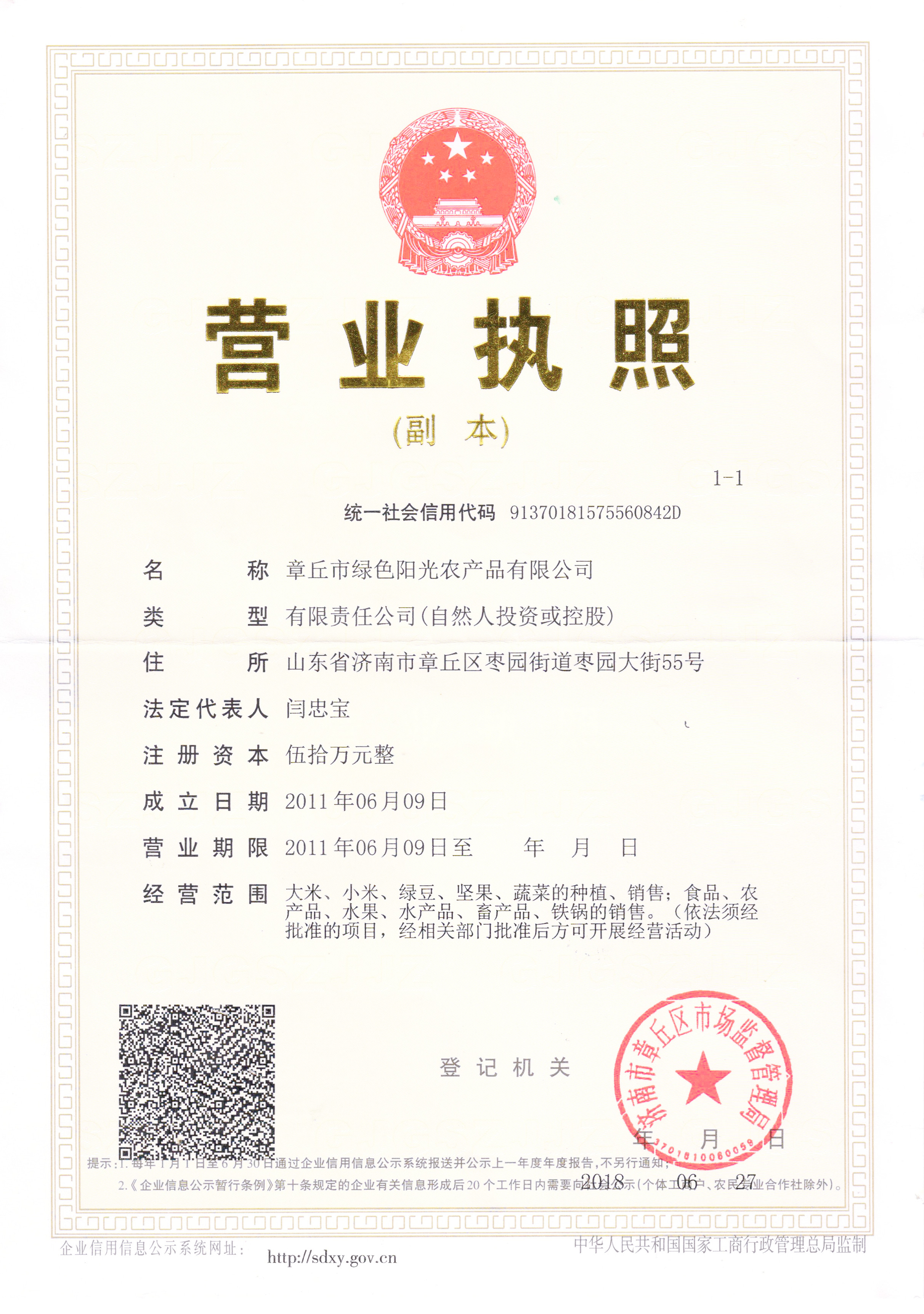 章丘市绿色阳光农产品有限公司